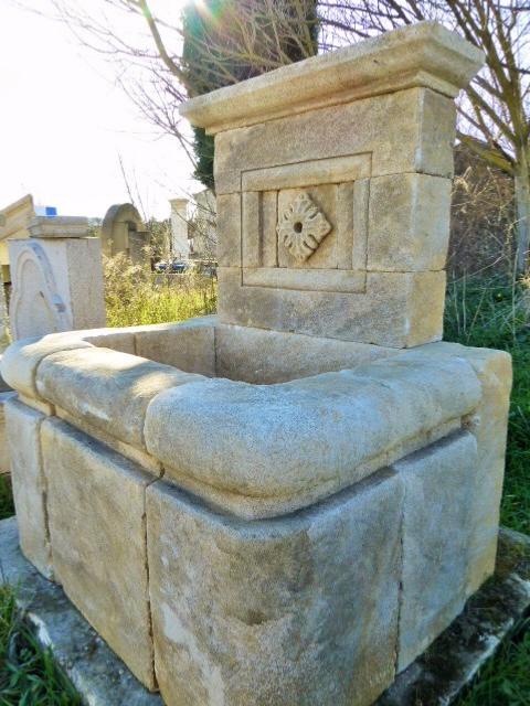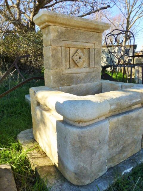 Elegant natural stone carved fountain made by a French craftsman.